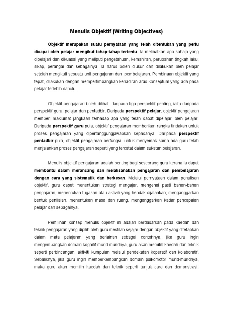 Contoh Penulisan Objektif Yang Boleh Diukur